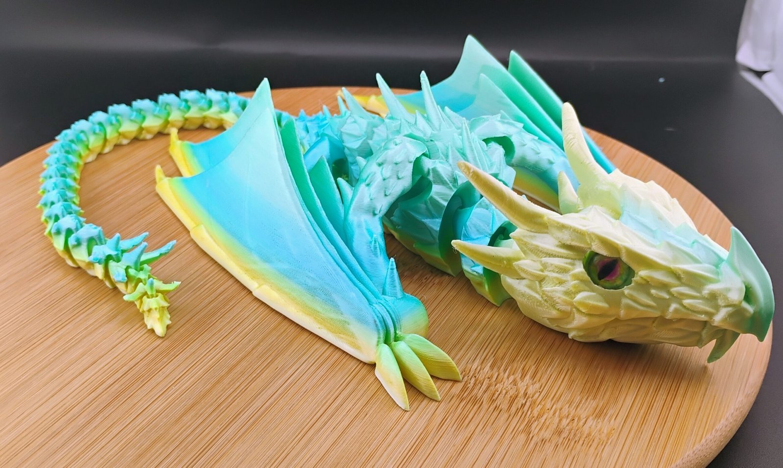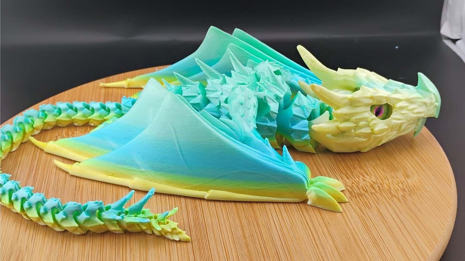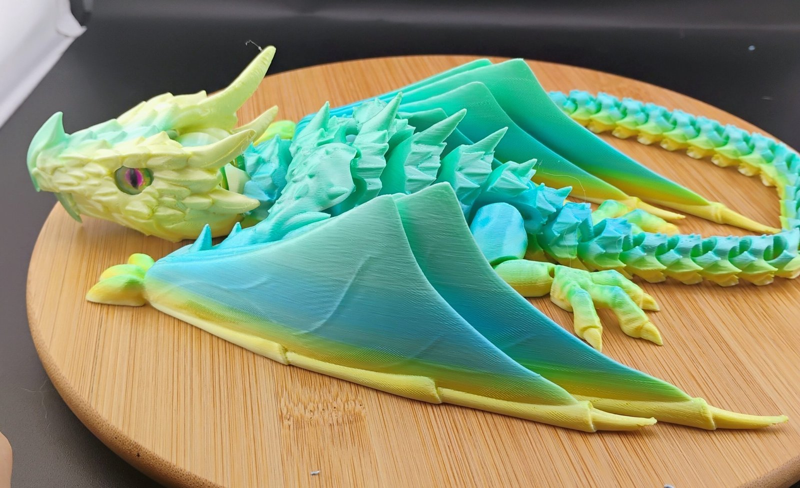 This dragon is printed with authentic multi-color gradient filament.