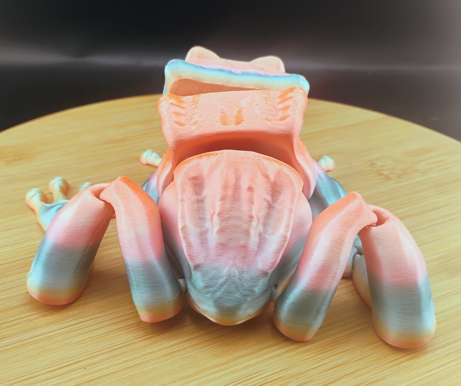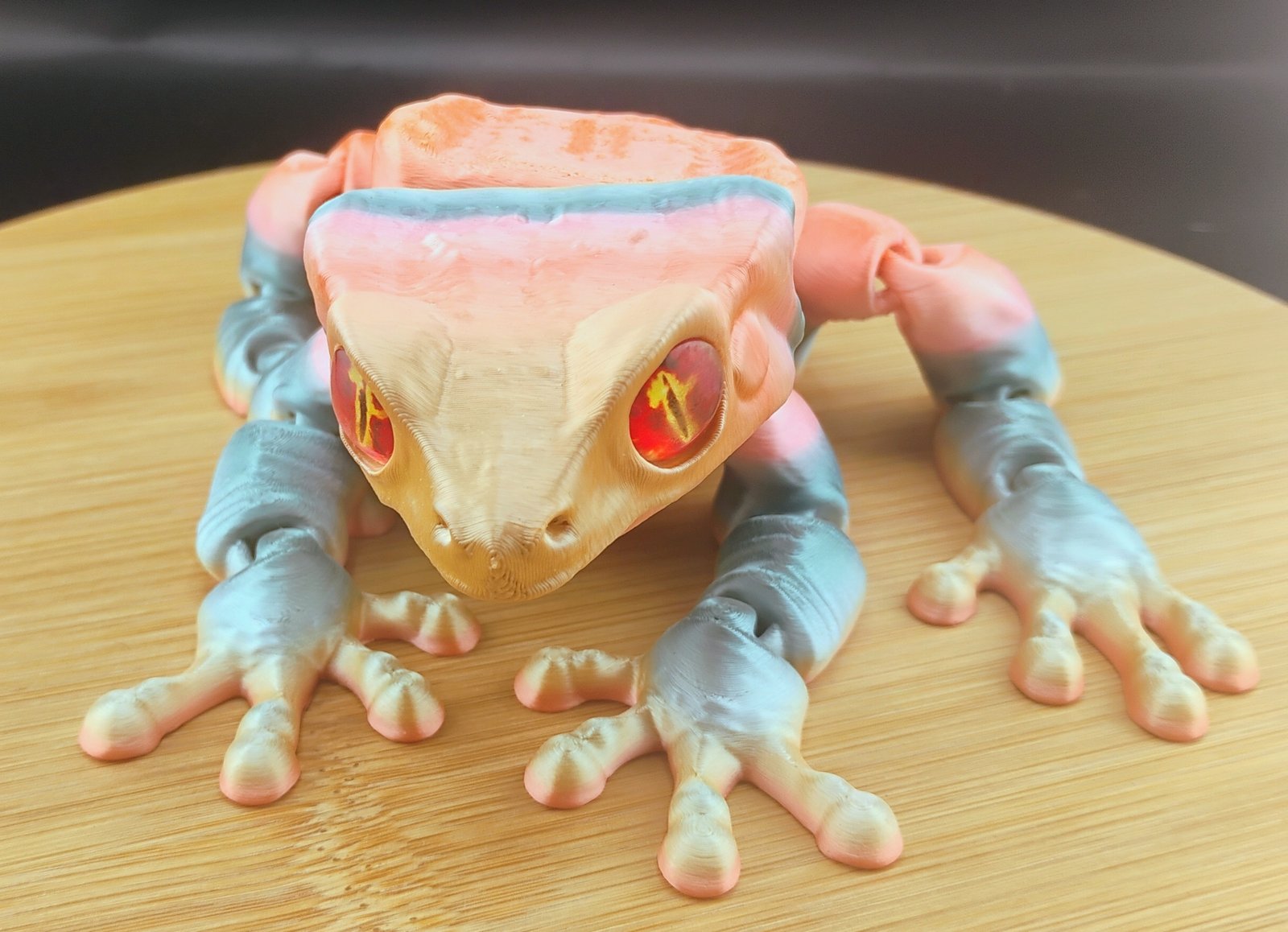 Every Blazin’ Banshee Frog is printed with naturally shifting gradient filament, creating a unique flame pattern on each creature. While transitions vary, all Banshees remain true to the warm, fiery color palette shown in the product images.