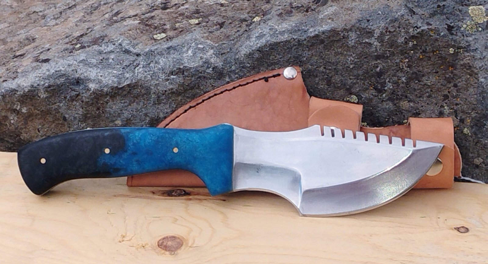 D2 Tracker Knife – Blue/Black Resin Handle & Leather Sheath