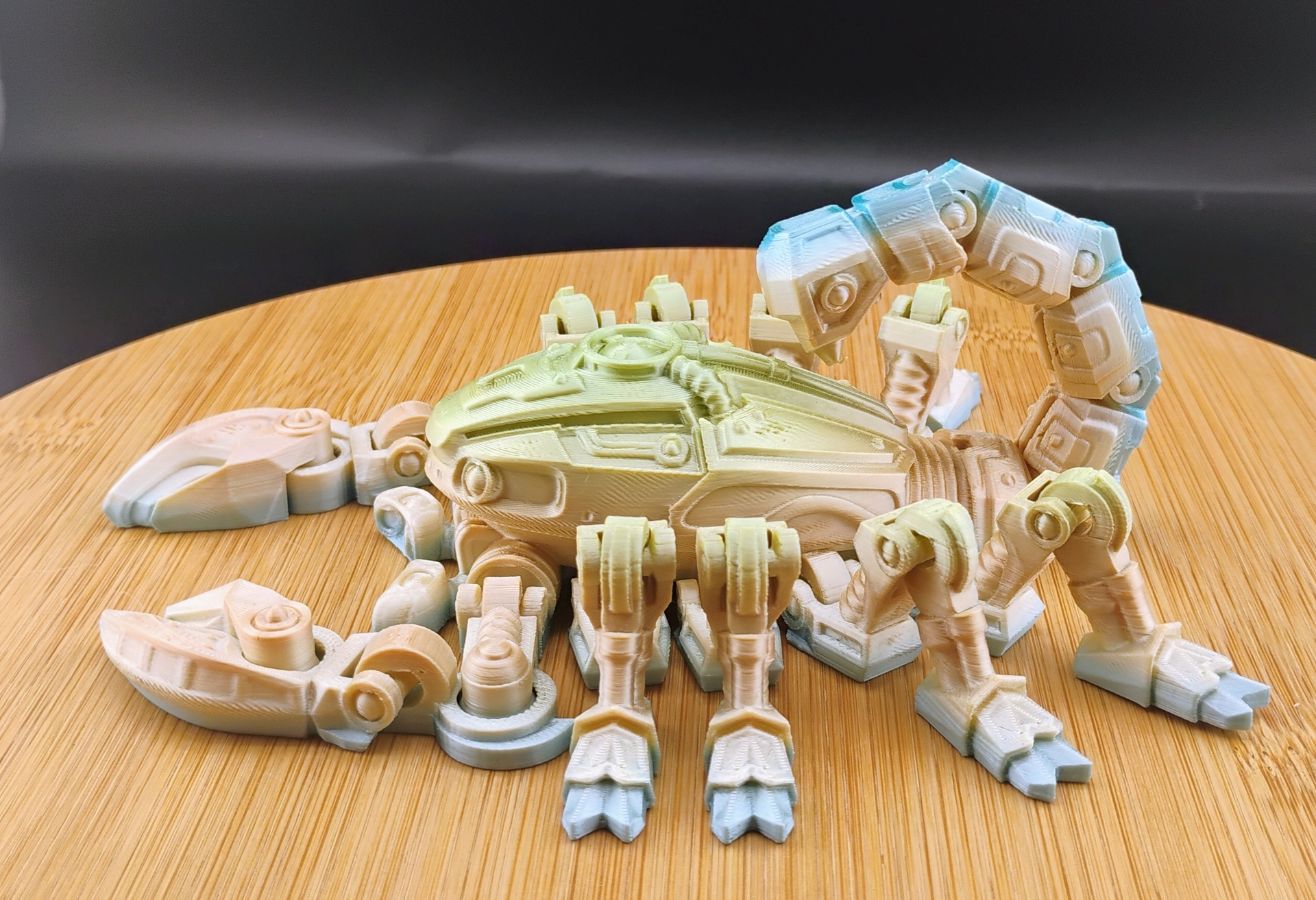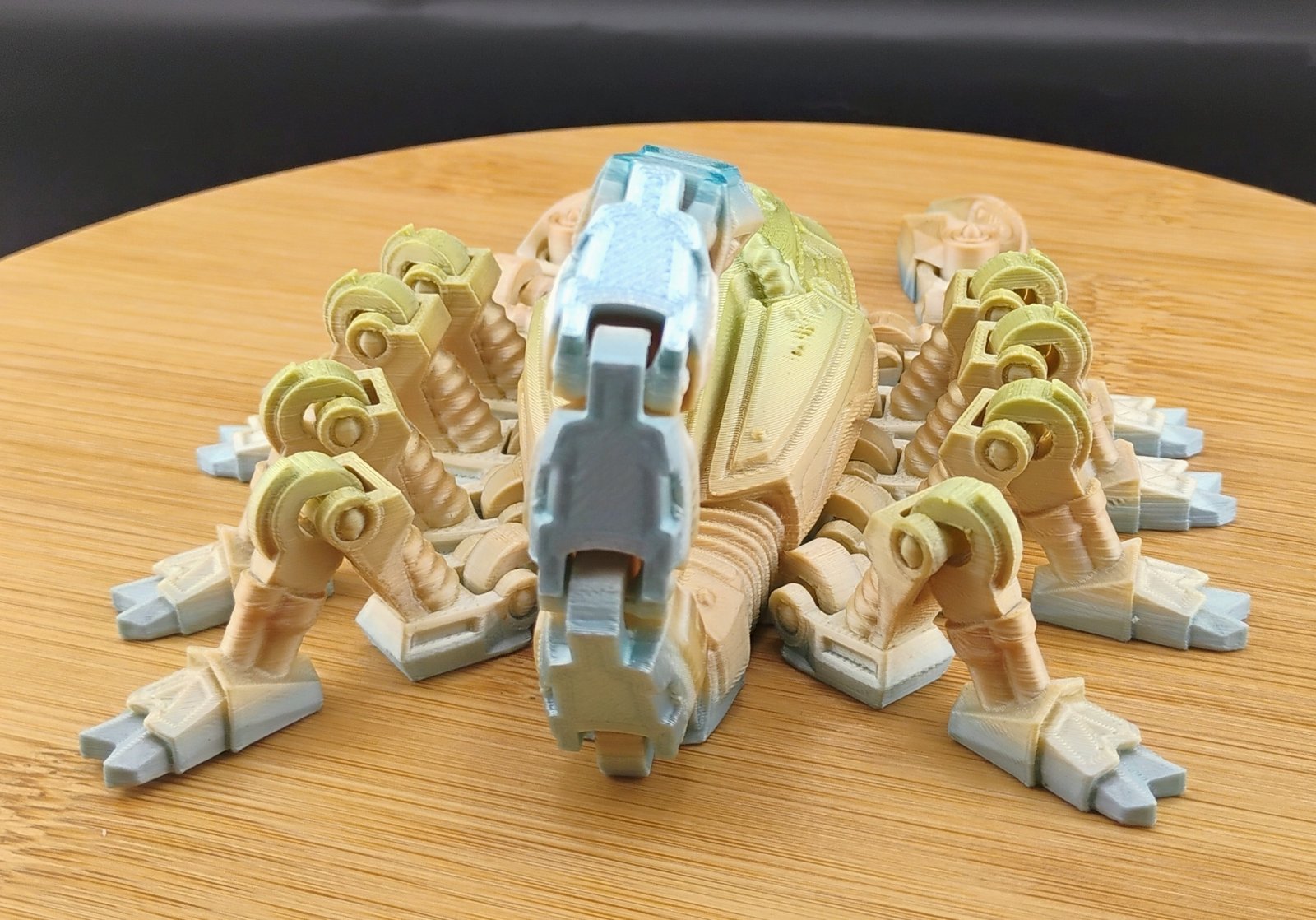 A fully articulated sci-fi scorpion printed in shifting desert-mirage gradients. Durable 3-wall construction, 15% gyroid infill, and detailed mechanical limbs make this a standout mech creature for collectors. Gradient color flow varies naturally between prints, making each MirageSting unique.