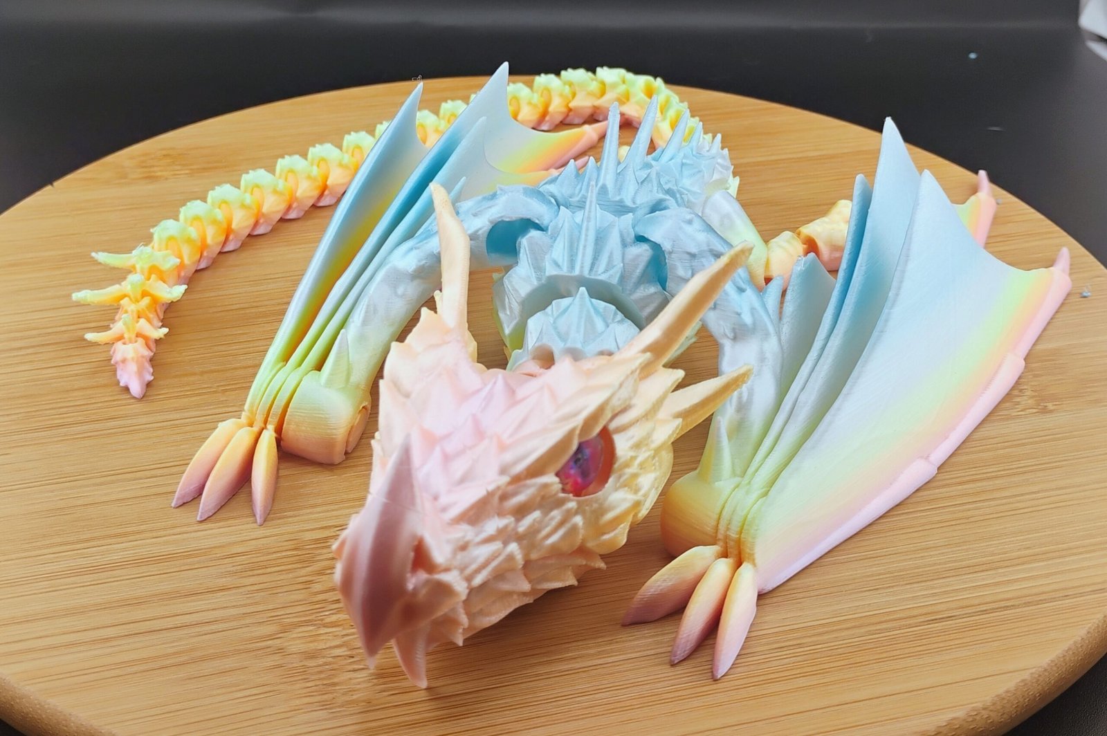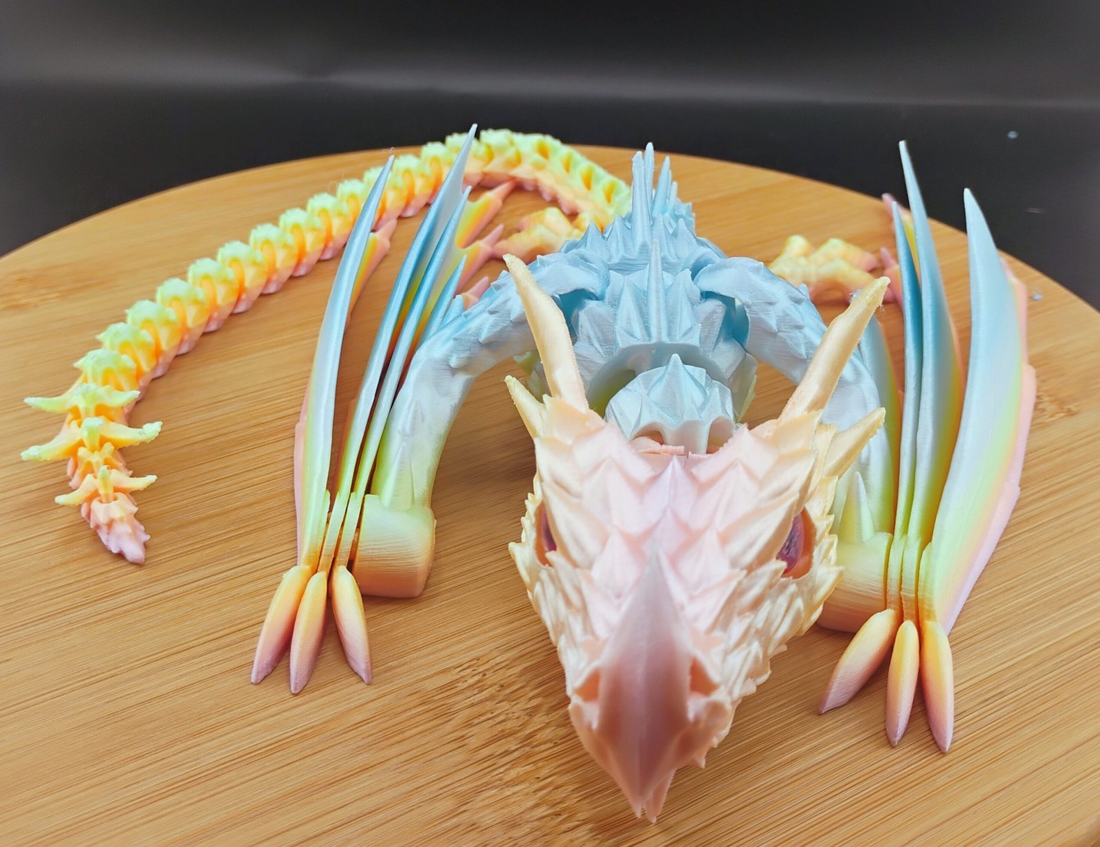 This dragon is printed using authentic gradient filament, meaning the color transitions occur naturally during printing.