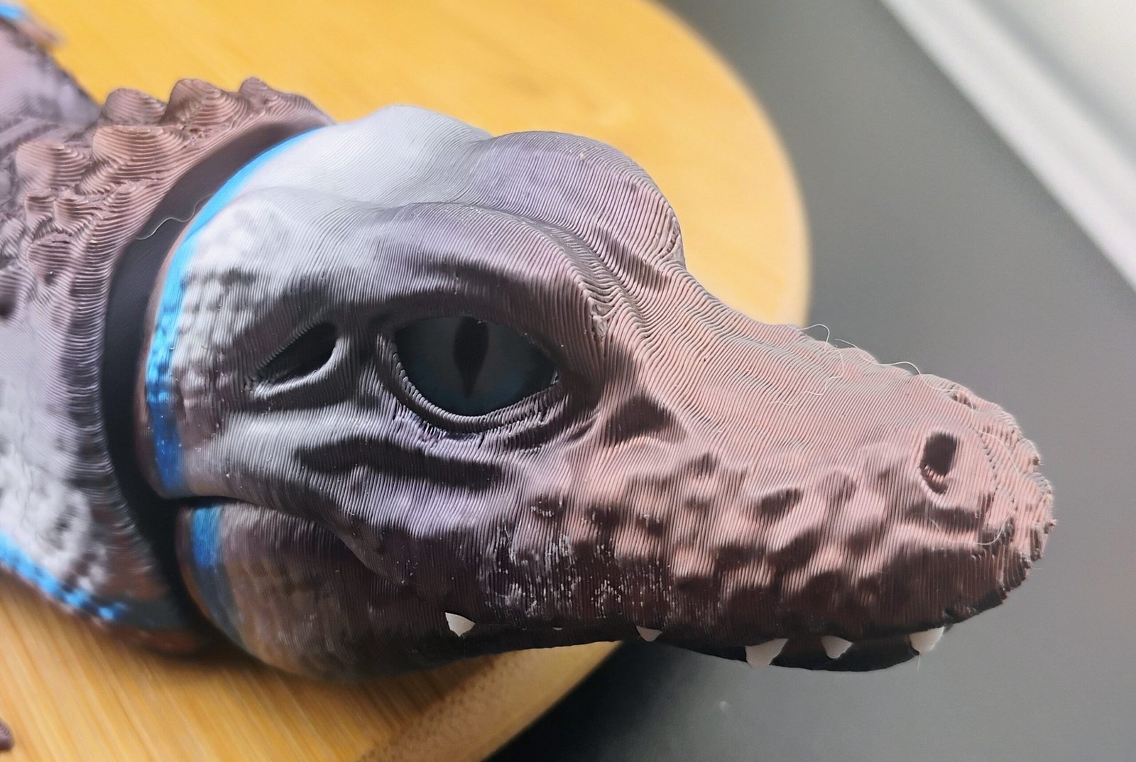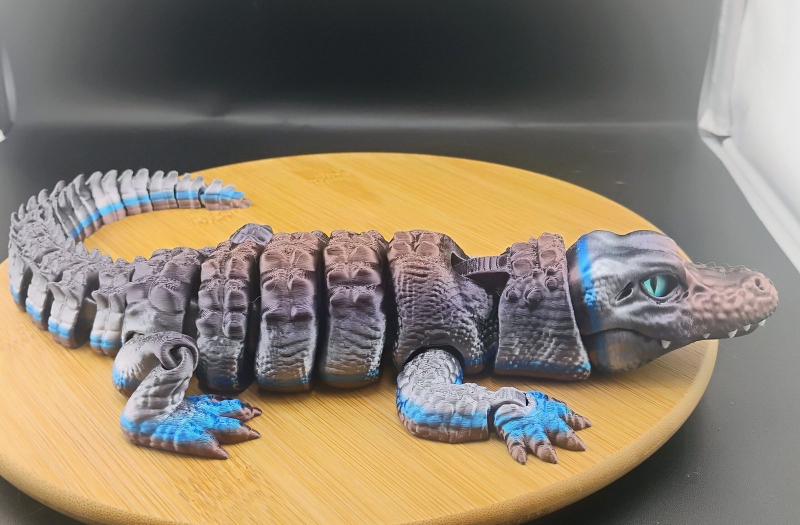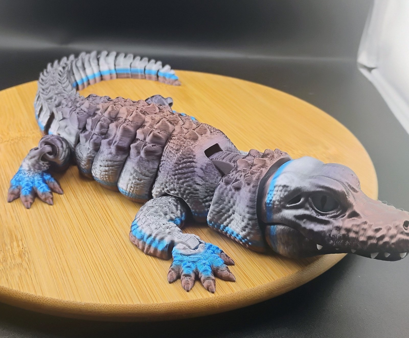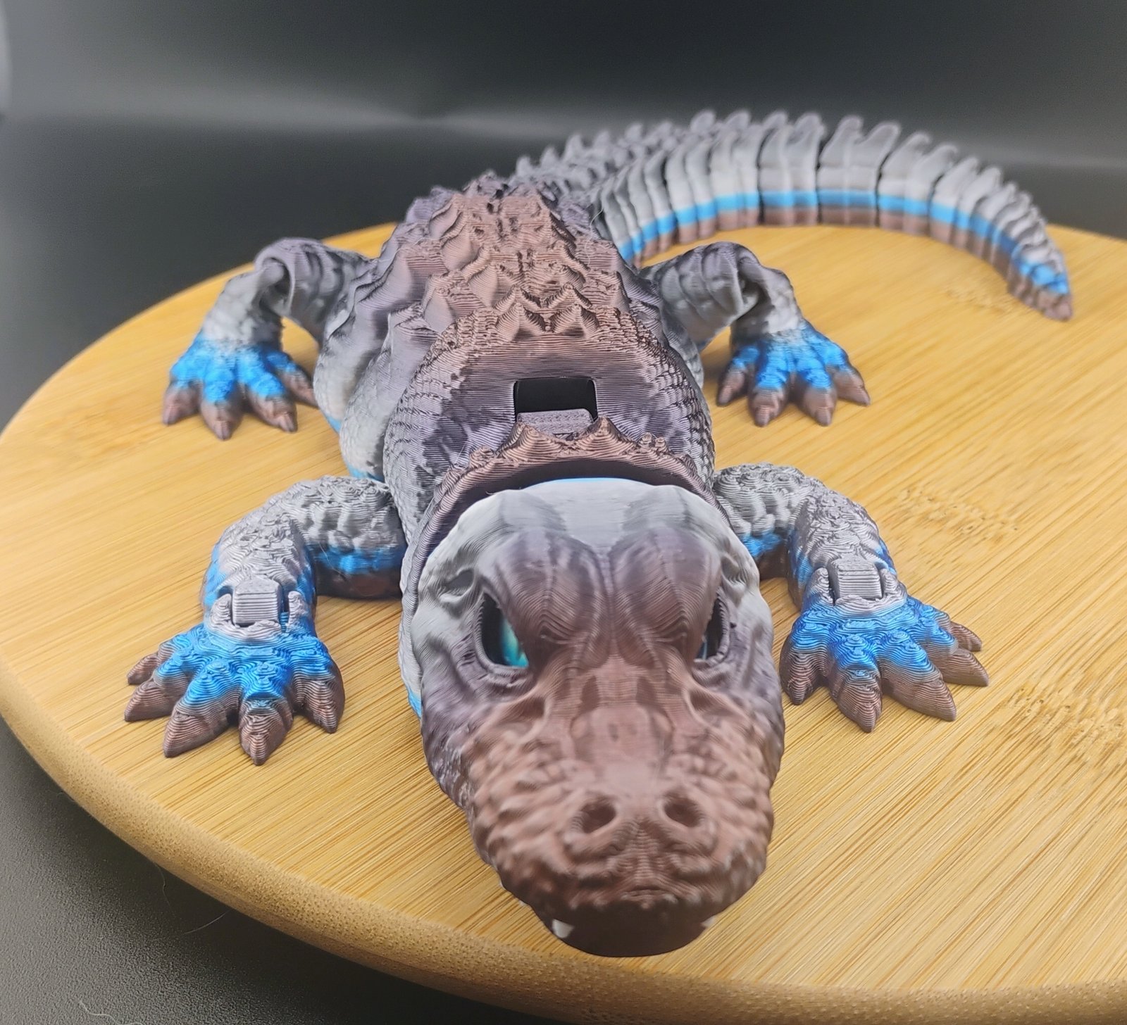 Bring home the untamed chill of the tundra with the Stormscale Flexigator, an impressive 16-inch articulated 3D printed alligator forged in a fierce steel-to-arctic-blue gradient. This Iceborn beast blends high-end craftsmanship with bold visual presence, making it one of the most striking articulated flexi creatures in the entire Scale Series.