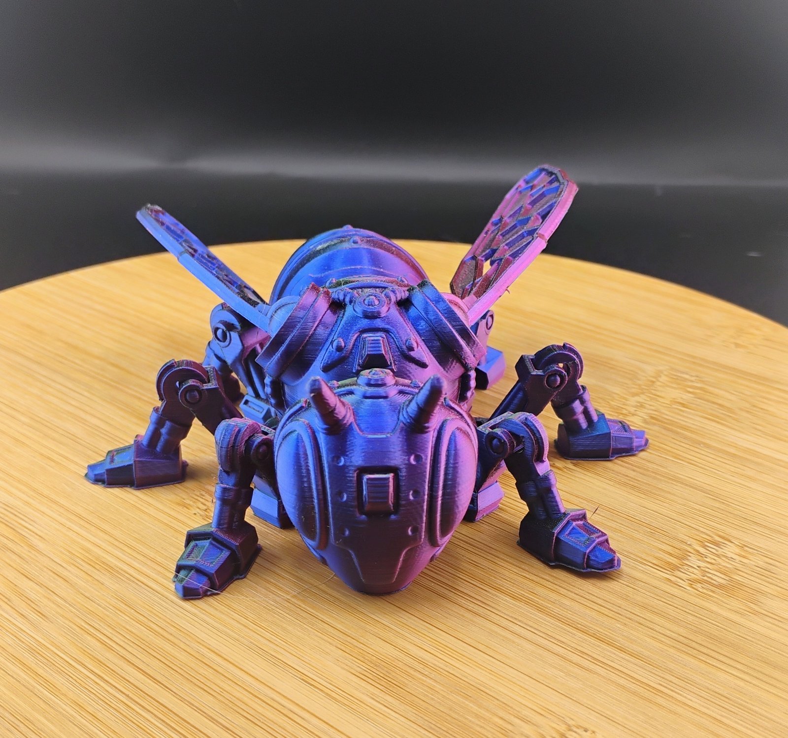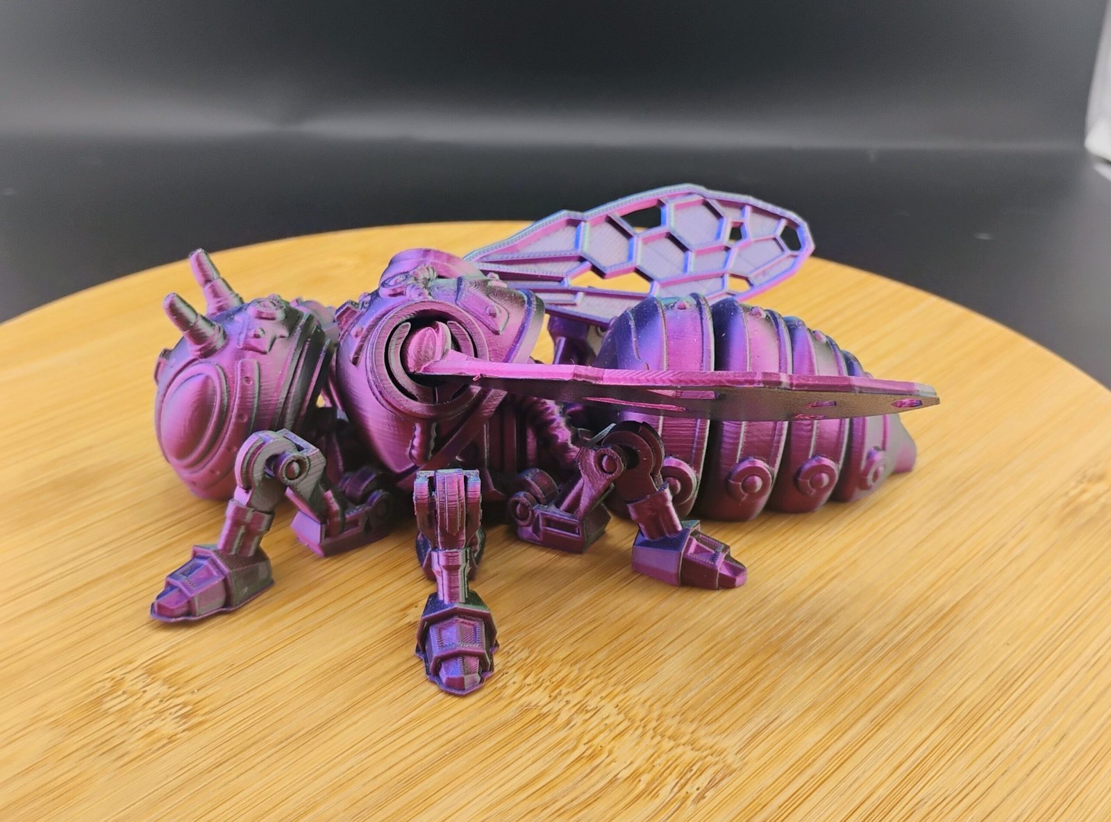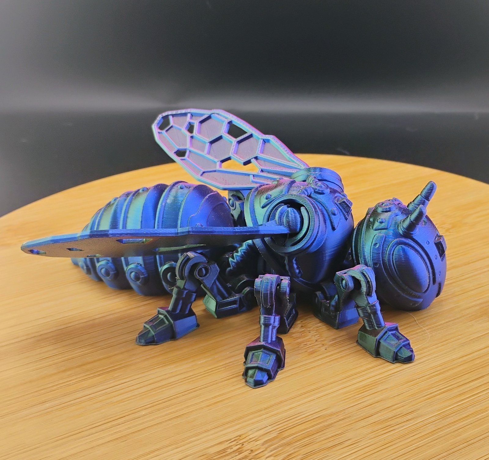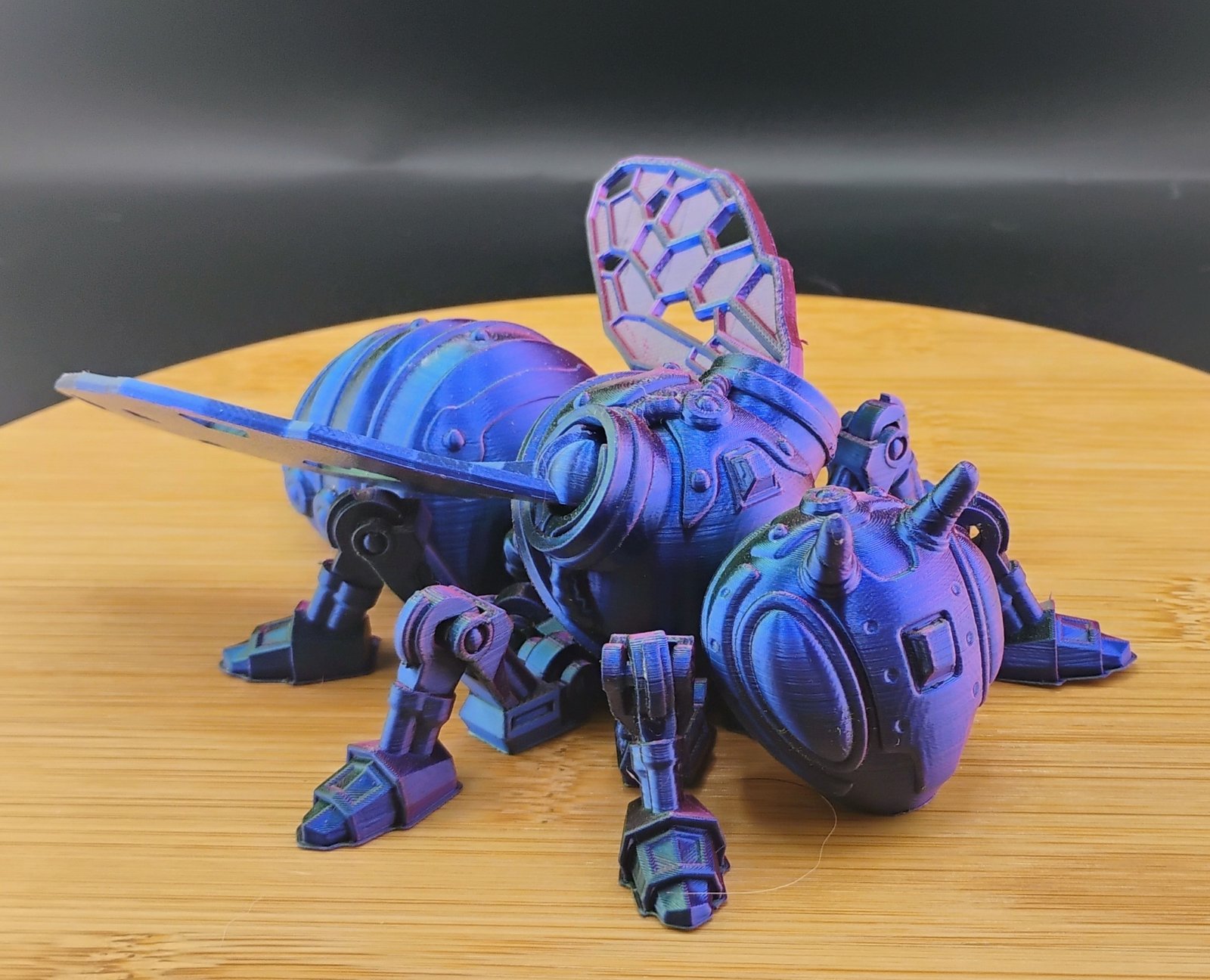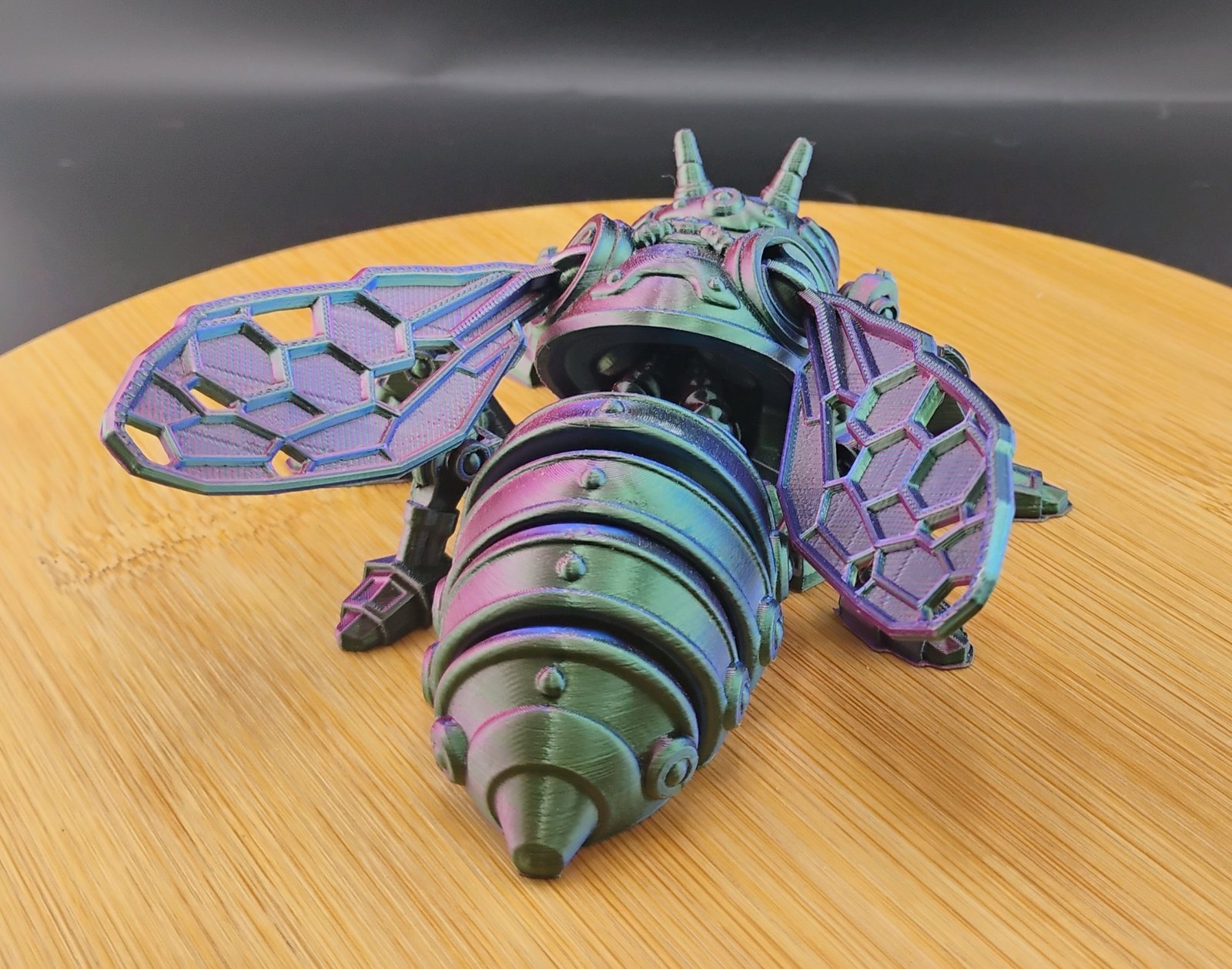 VoidBuzz is printed using premium multicolor gradient filament, meaning each mech bee will have its own unique color flow.